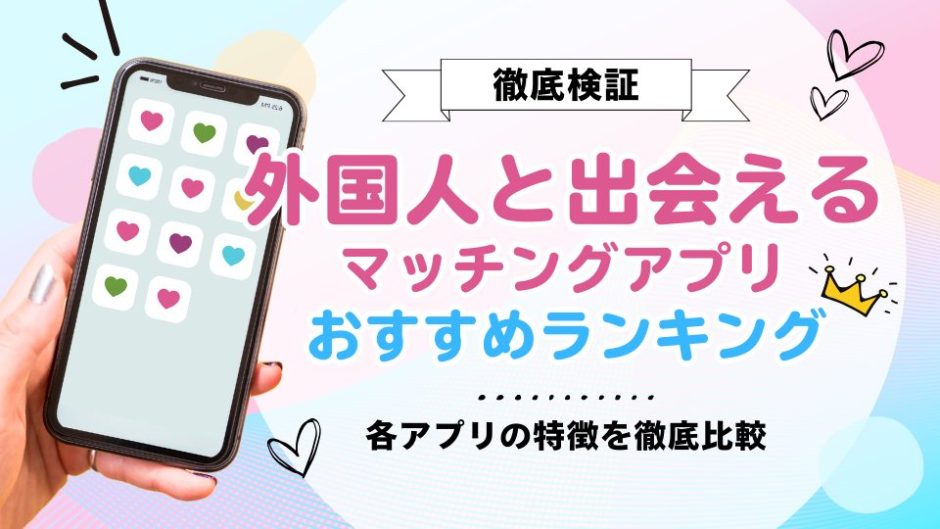そこで今回は、実際にアプリで外国人と出会った経験者の口コミをもとに、外国人と出会えるおすすめマッチングアプリ9個を厳選して紹介します!