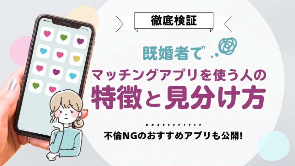 そこで今回は、マッチングアプリに潜む既婚者の特徴と見分け方や、既婚者が少ないおすすめアプリ3選をご紹介します。