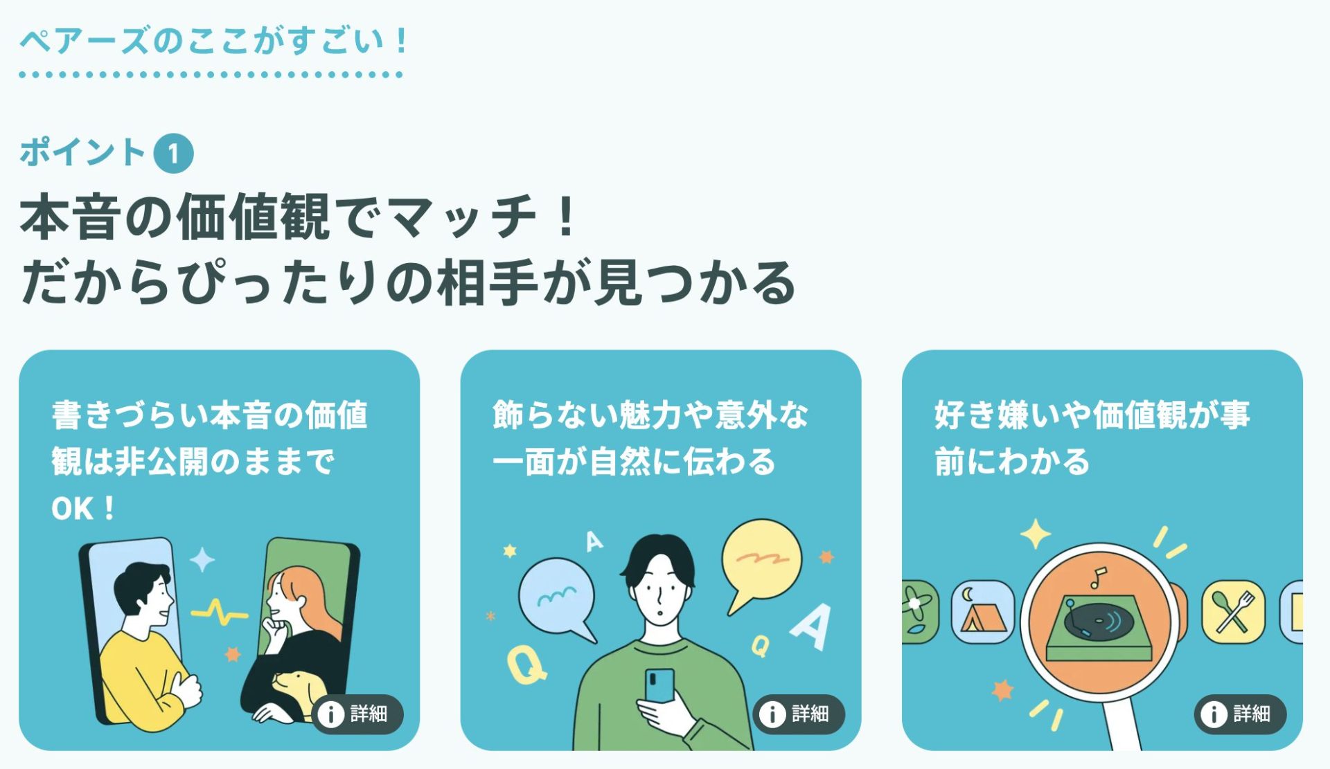 本音の価値観でマッチングできる!