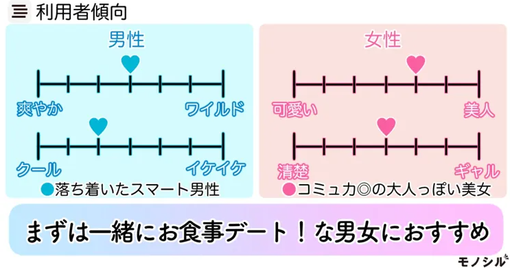 彼氏や彼女を作る際に、性格の相性を重視したい人にとって、最適なアプリです。性格診断が気になる方には特におすすめです。