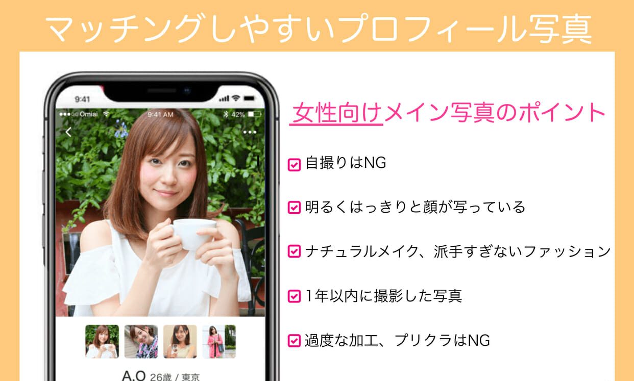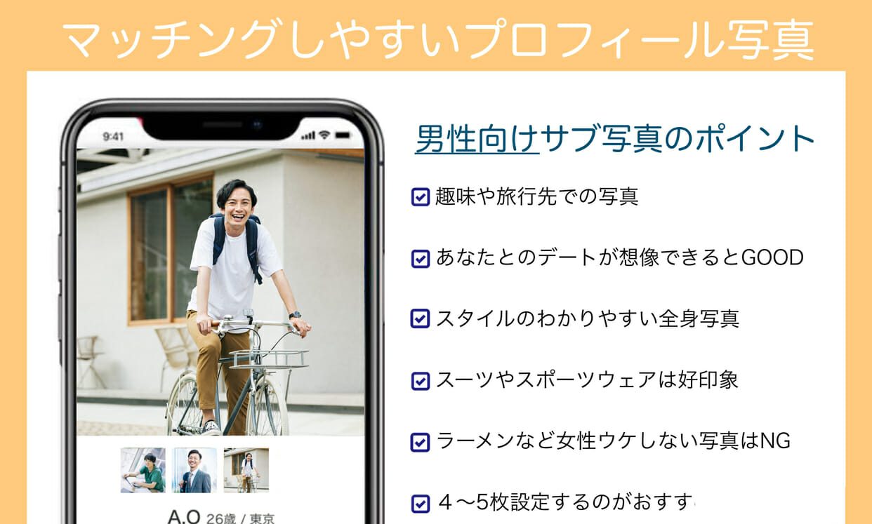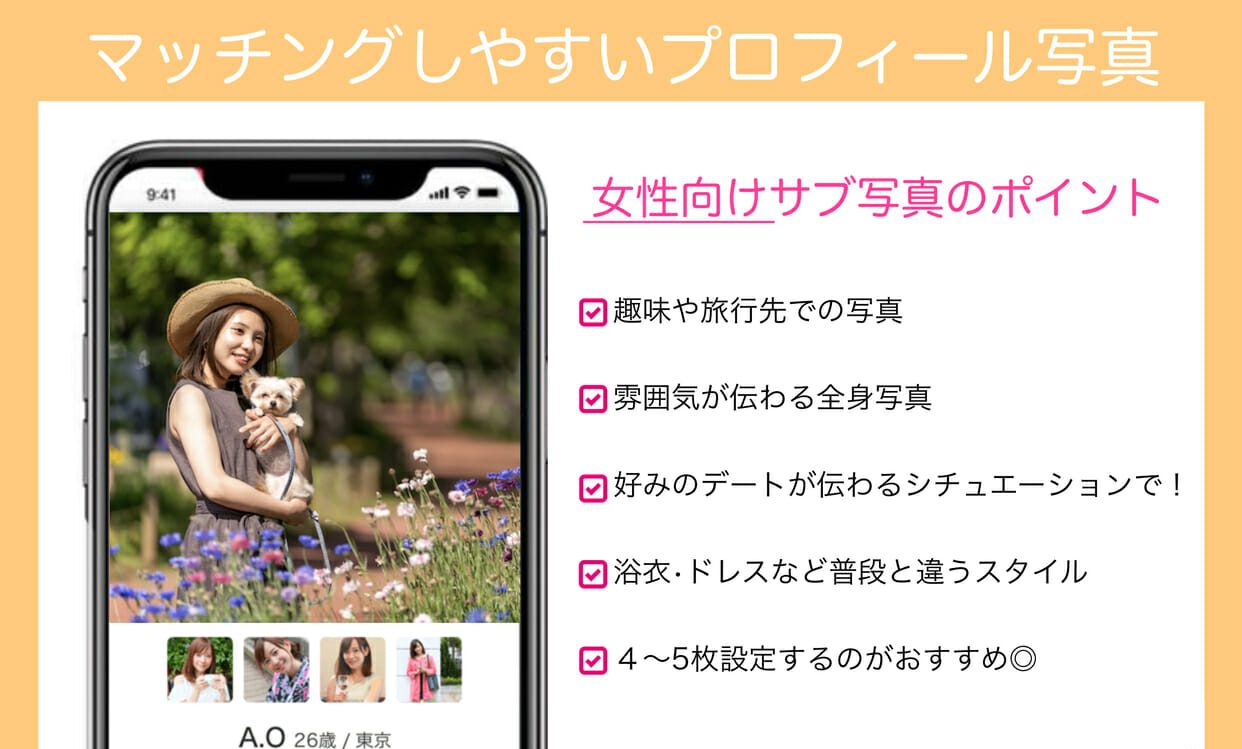 魅力的に見せるためのサブ写真のポイントも、男女別に紹介します!