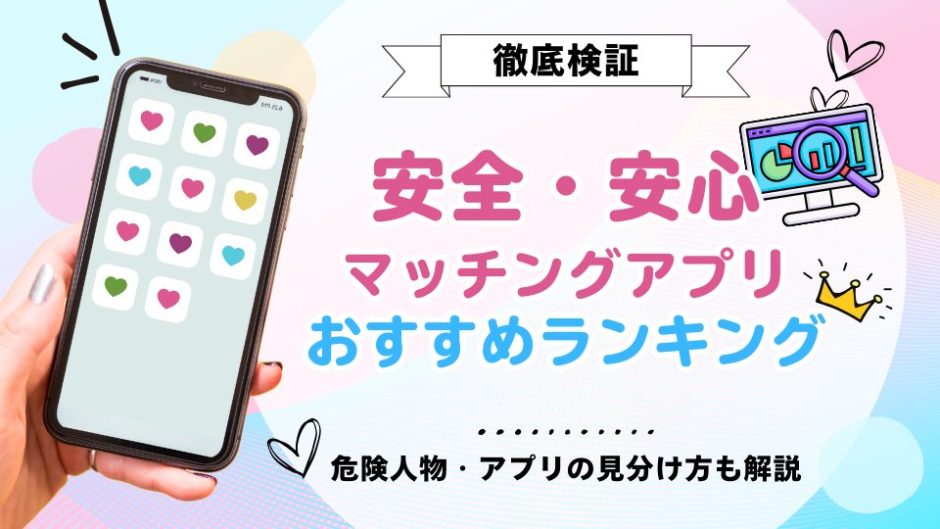 この記事では、ユーザー517人の口コミと編集部の調査でわかった、"安全性の高いマッチングアプリおすすめ9選"を紹介します。