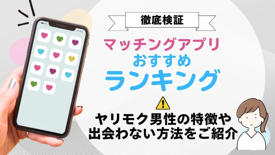 本記事では、マッチングアプリランキング8選とヤリモクの男性に出会わない方法についてご紹介しています。